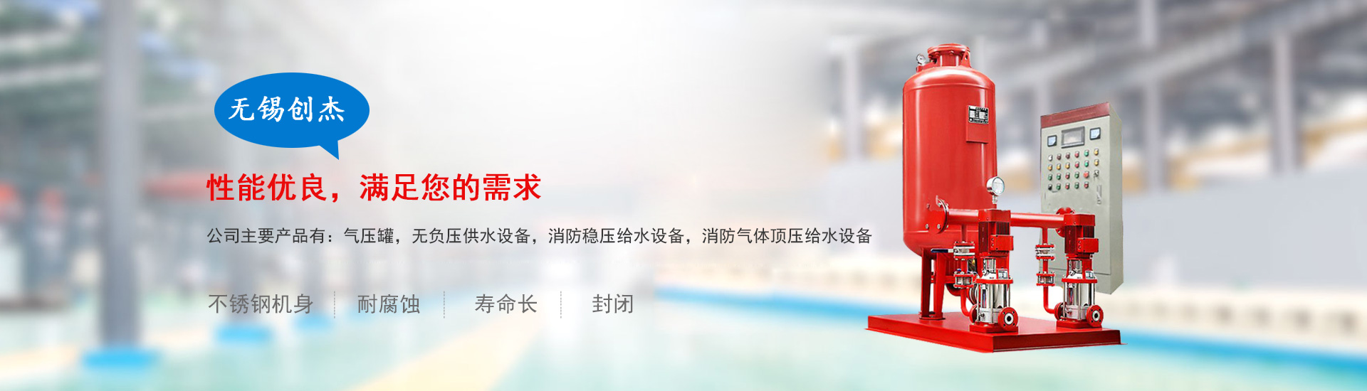 全國(guó)咨詢熱線:熱門關(guān)鍵詞: 氣壓罐 消防穩(wěn)壓給水設(shè)備 無(wú)負(fù)壓供水設(shè)備 氣體頂壓消防供水設(shè)備 壓力容器